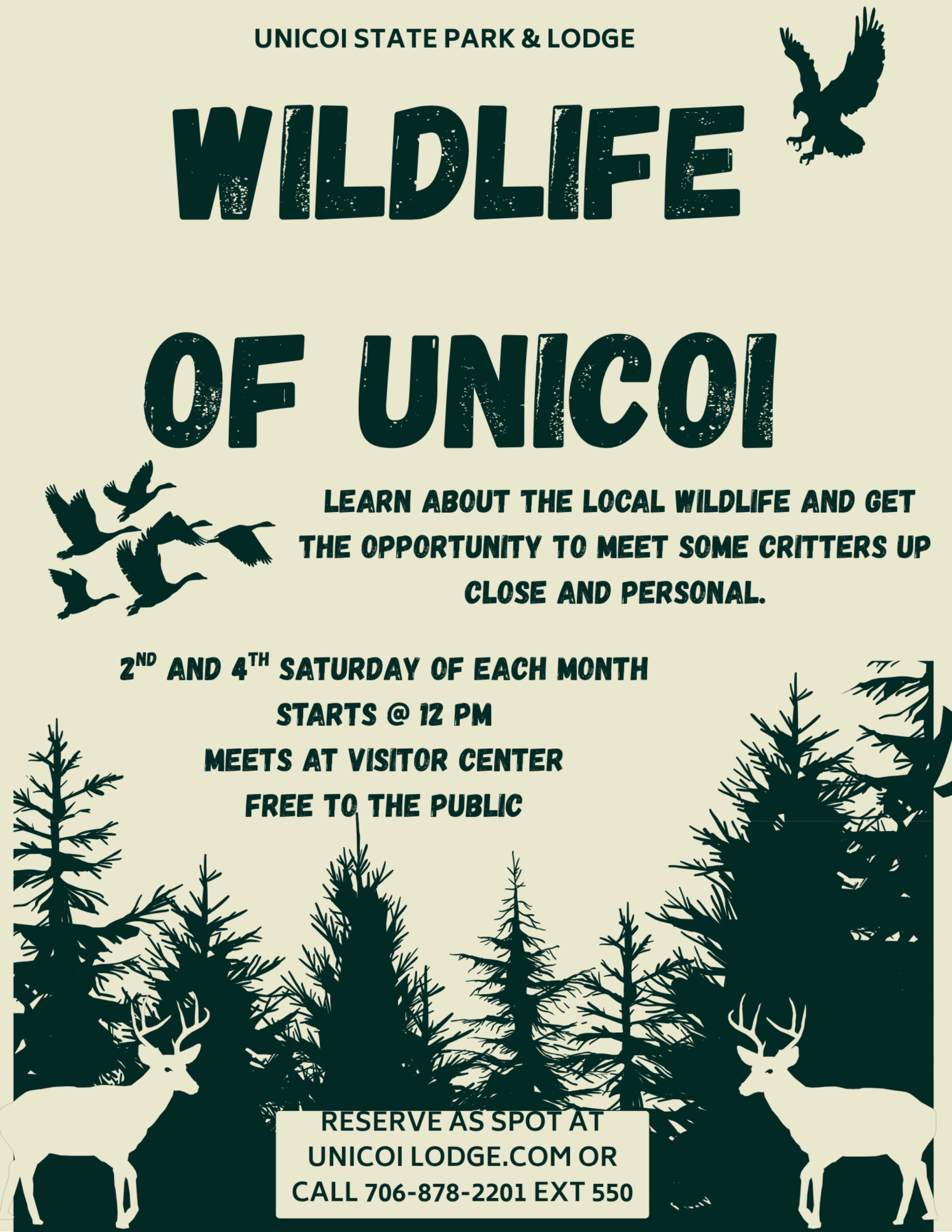 Join us in the Visitor Center at 12pm on the 2nd and 4th Saturday of each month through December to learn about the local wildlife and get the opportunity to meet some critters up close and personal. Free to the public RSVP Online